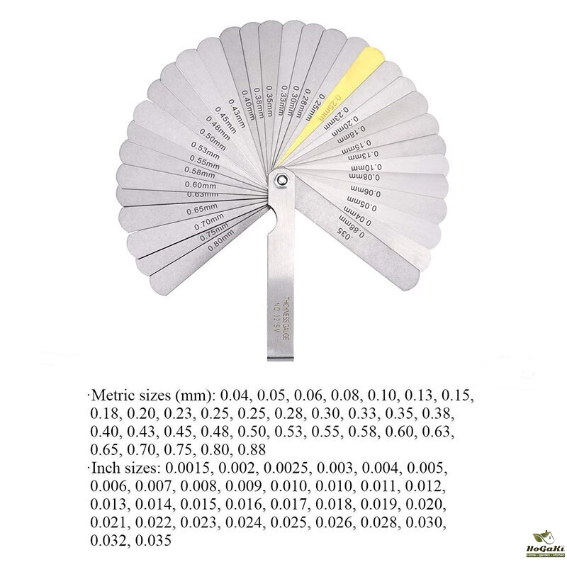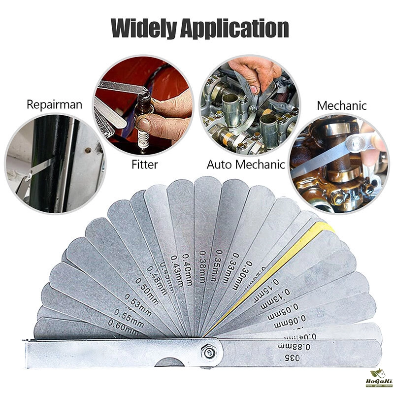 Suitable for designers, engineers, mechanics to measure the thickness of tappet clearances, spark plugs gaps, bearing clearances, piston ring gaps and other hard to reach places.