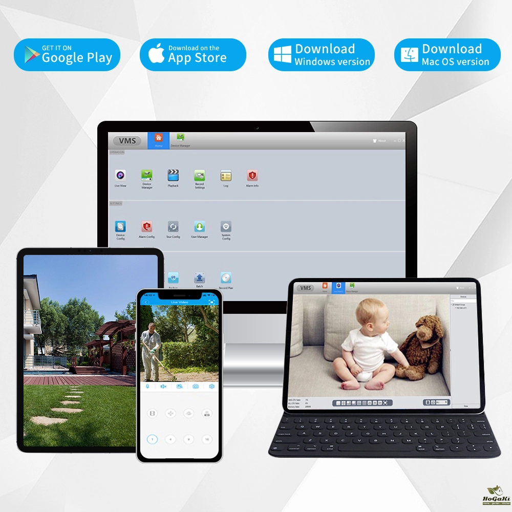 When you go outside,you needn't to worry about your property security. By using the asecam wireless cctv system,you can remote view live video simultaneously at anytime, anywhere with wifi/4G on smartphone/iPad/PC. With the free app "XMEye" users can access footage via their smart device (IOS/Android) or computer (Windows) software:CMS. Watch live streams and view playbacks instantly, helping you stay informed whenever, wherever.