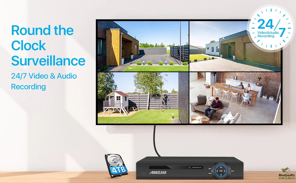 ASECAM 8MP 4K PoE NVR security camera system supports simultaneous live feed and 24/7 recording for all cameras. the security IP camera can not only record just motion clips, but also every single minute of what happened. When something abnormal is detected, you’ll get notified instantly. You will never miss anything.