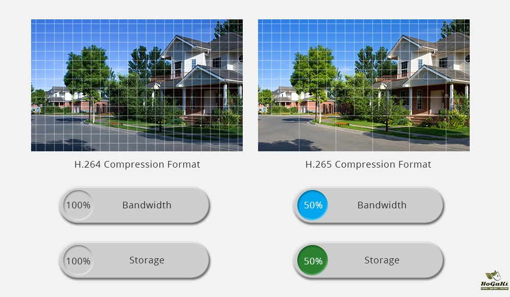 H.265 More Clear , HD resolution offer you best image quality in a lower bit rate.Save more storage space,can reduce 40%-50% file size,save your HDD storage space and reduce your purchase cost.