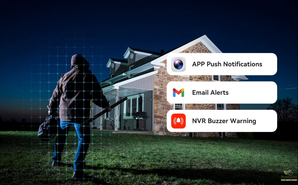 This 4K 8MP security System can detect motion and notify you instantly through push notifications, emails alerts . You can personalize all kinds of alerts to fit your needs.