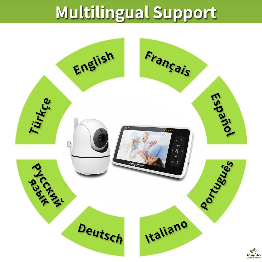 5 Inch Video Baby Monitor With 4X Zoom Babyphone Camera Bebe Nanny Monitors Mother Kid Two Way Audio Night Vision Babysitter