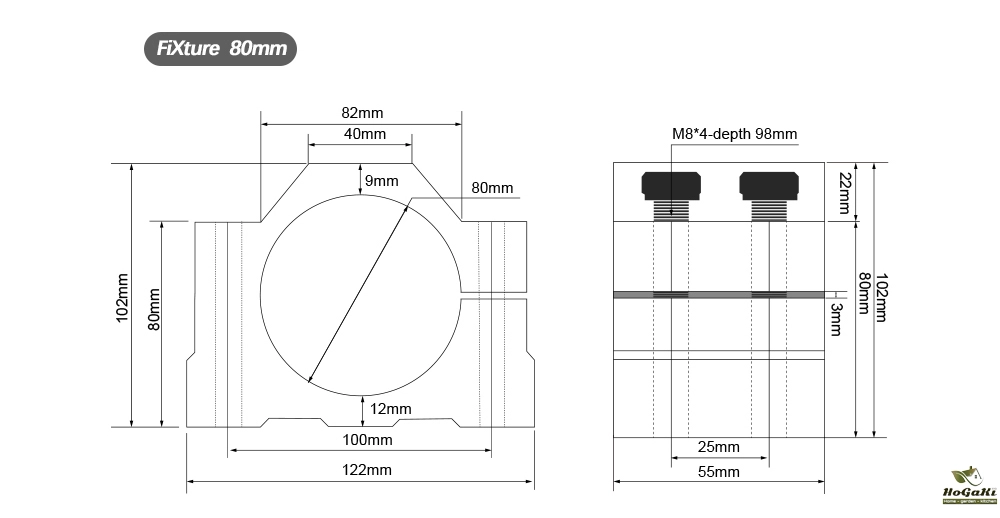 52mm/55mm/65mm/80mm spindle bracket with 4 holes