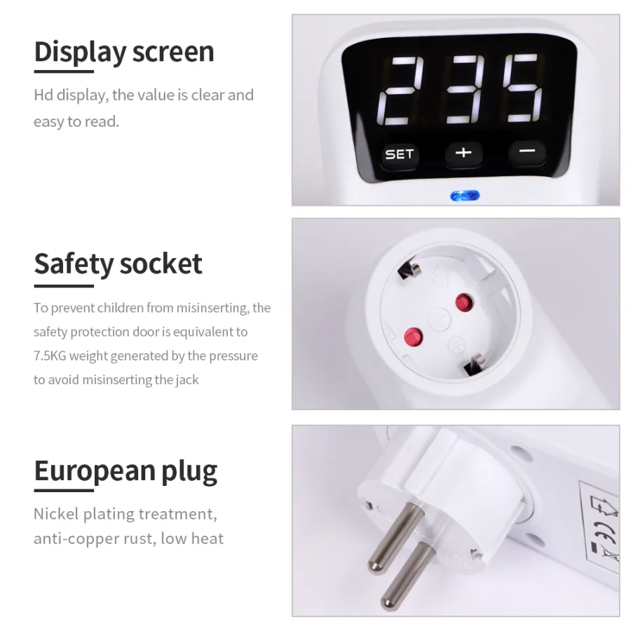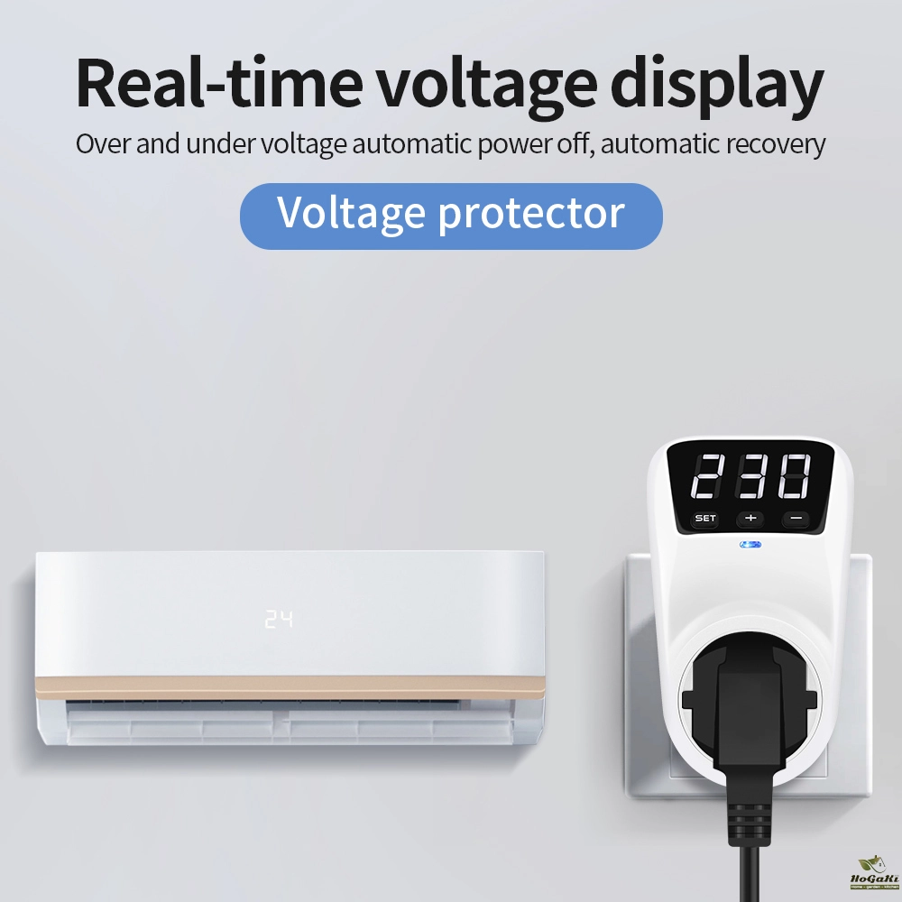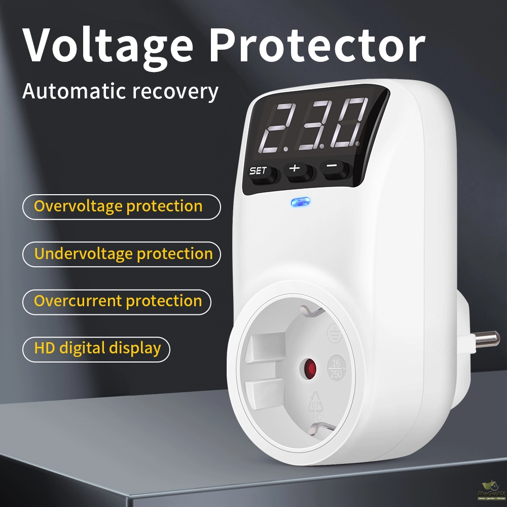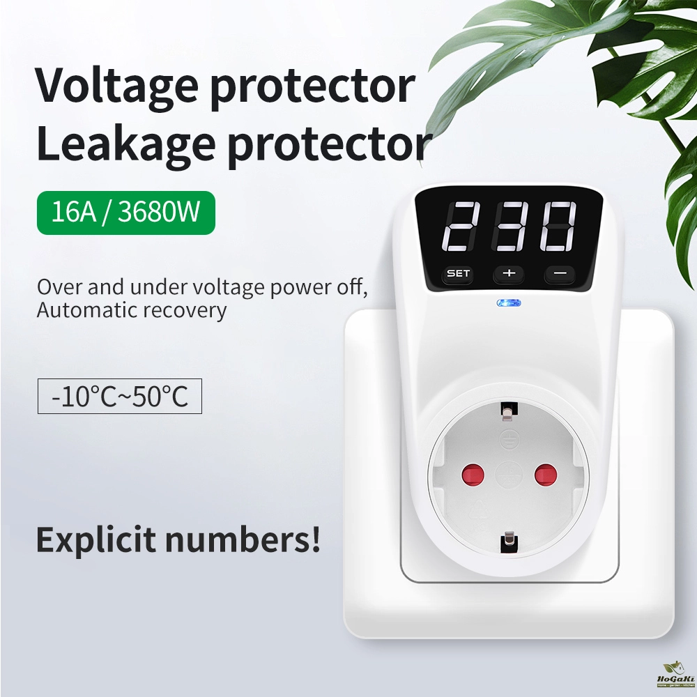 New Adjustable Voltage Protector Socket AC 230V 16A Automatic Power Surge Protector EU Plug Socket Under Overvoltage Protection