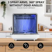 Countertop Dishwasher 6 Washing Programs Low Noice 2 Water Inlet Methods Strong Hot Air Drying Portable Dishwasher for Home
