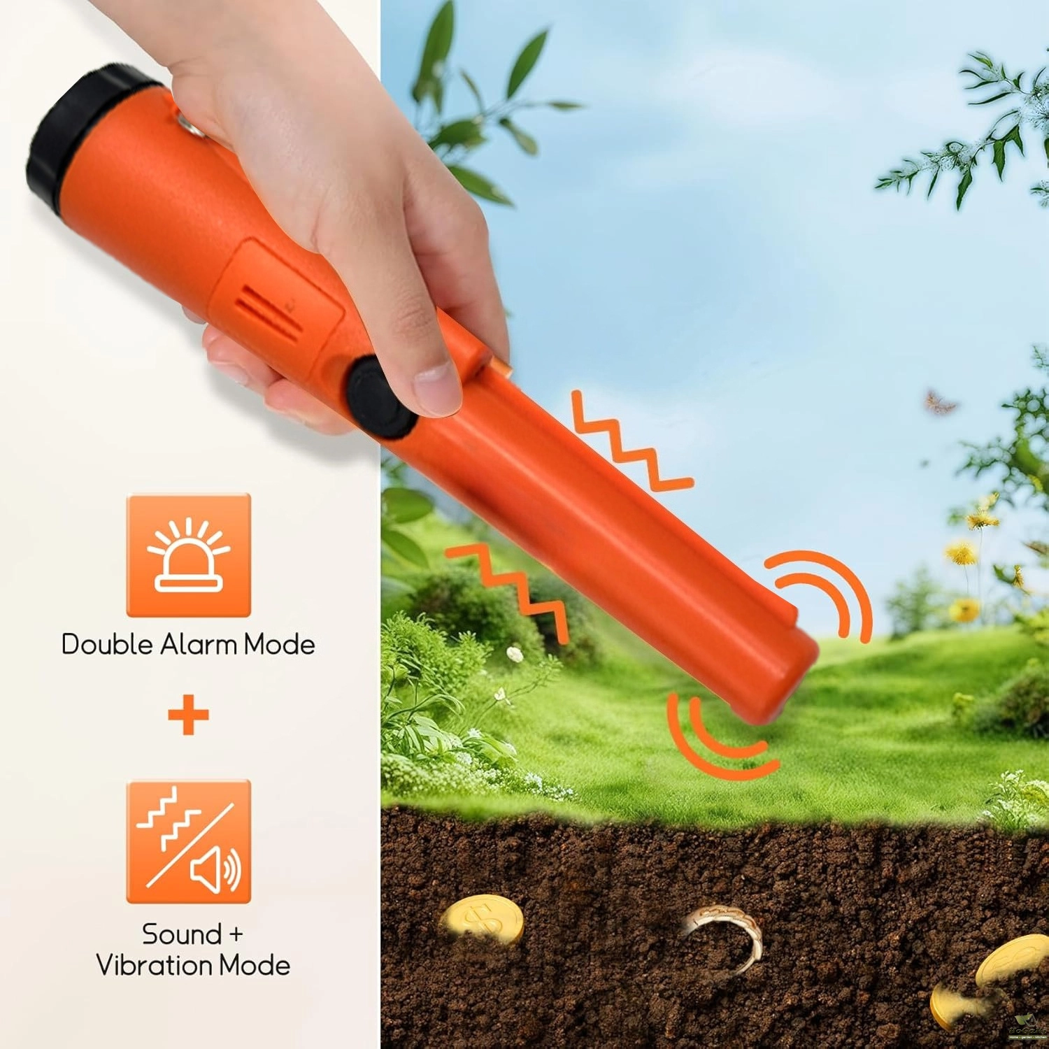 Easy Operation: Single button, when the metal object is detected, the LED light will light up. At the same time, there will be 'Bi-Bi' sound as an alarm. When the detector is close to the metal target, the intensity of the alarm will increase. This unique feature helps the user determine the exact location of the target