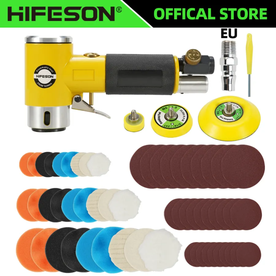 HIFESON 5inch/6inch Pneumatic Orbital Sander Air Polisher 125mm/150mm Air Vacuuming Eccentric 5mm Grinding Machine EU Connector