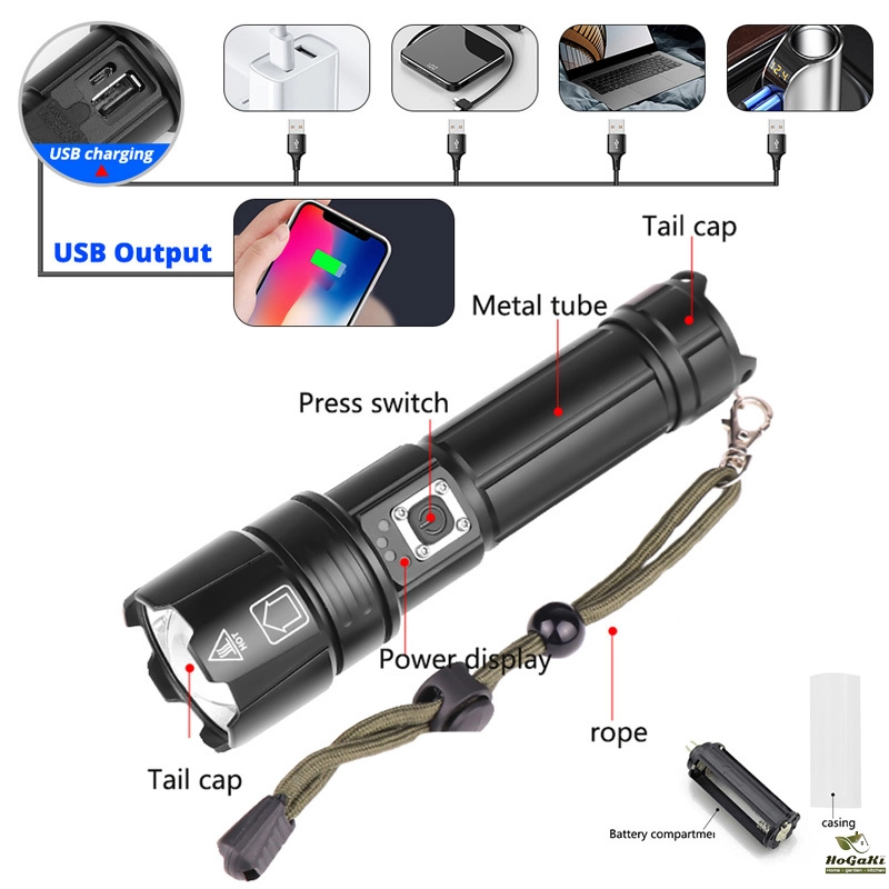 PACKAGE B: 1x XHP70.2 Flashlight+USB Cable+1 x Rechargeable 26650 Battery;