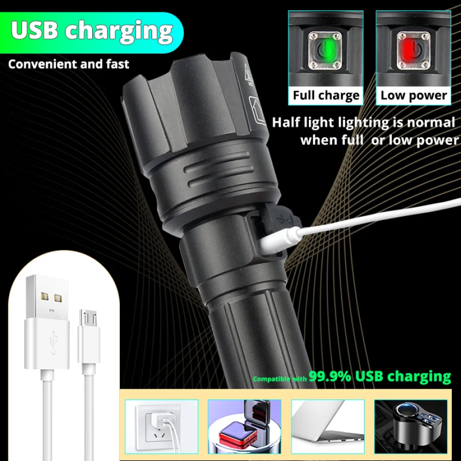 PACKAGE E: 1x XHP90 Flashlight+USB Cable(NO BATTERY WITH THIS PARCEL);