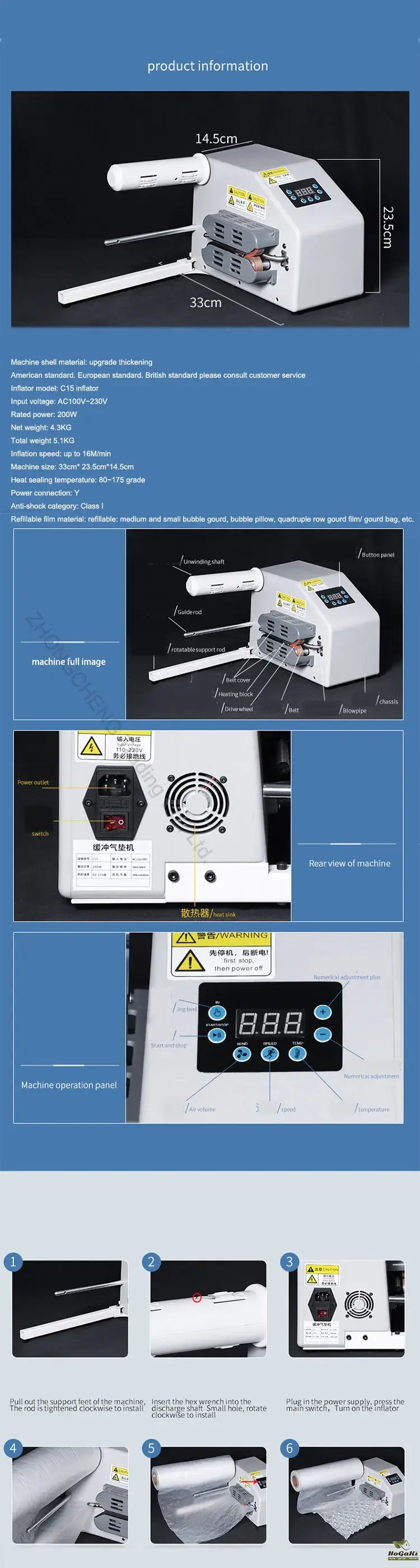 220v Electric Express Packaging Supplies Bubble Packaging Buffer Air Cushion Machine Shockproof Bubble Film Gourd Film Inflatabl