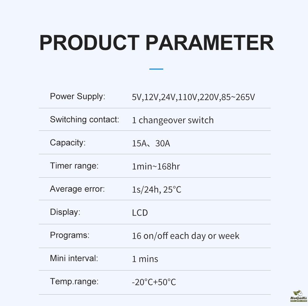 Timer range: 1min~168hr | Recharge battery: 1.2V 40Ma |