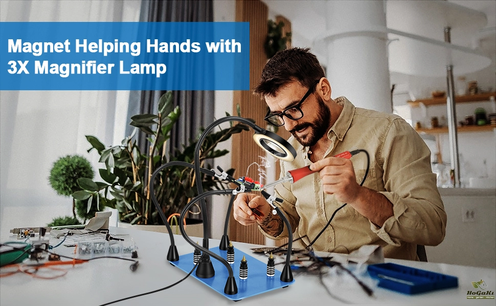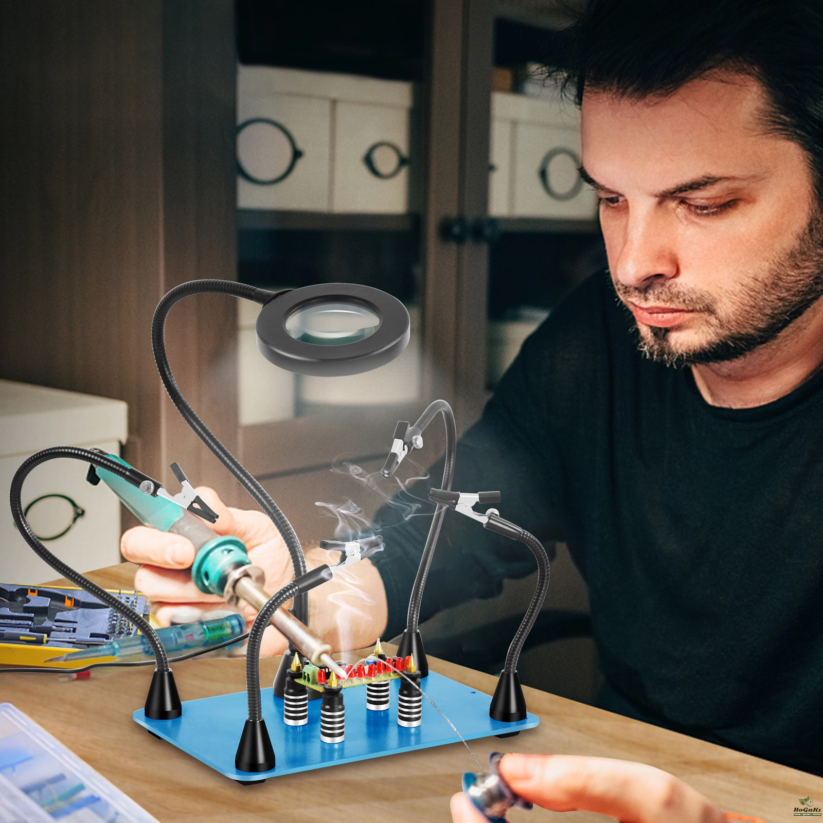 NEWACALOX Magnetic Third Hand Soldering Tool with Heavy Duty Steel Base Welding Helping Hands for Soldering Work StationPackage including:(T-4AB-BE9)