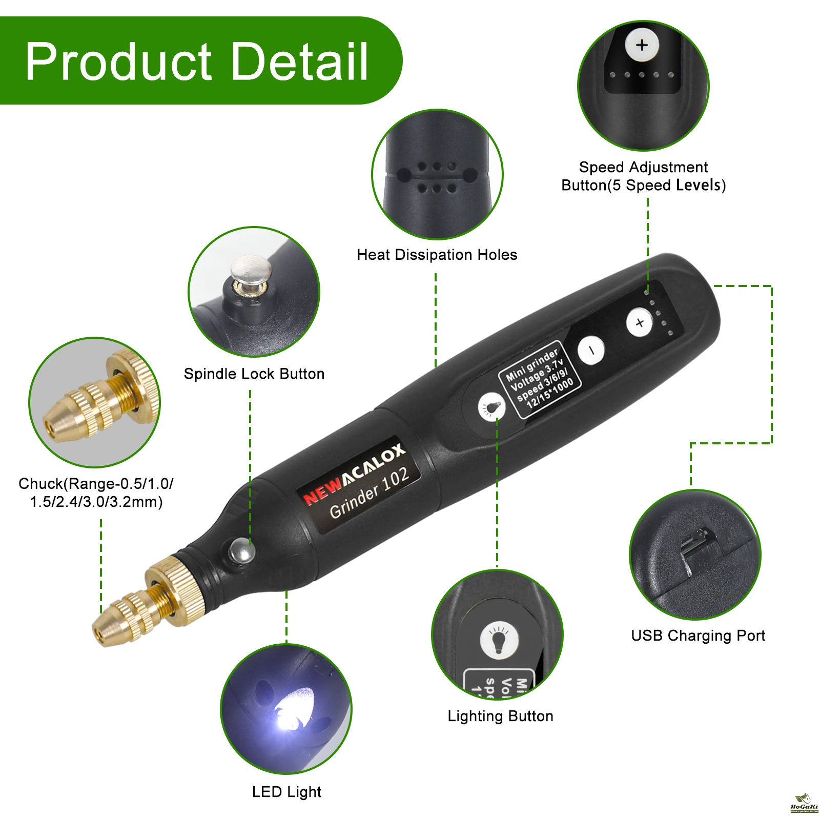 2.Regulating Speed-This electric carving tool has 5 speed adjustment,speed adjustment range:3000/6000/9000/12000/15000 r/min.