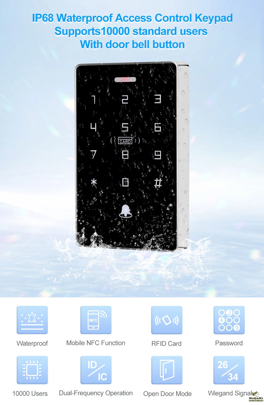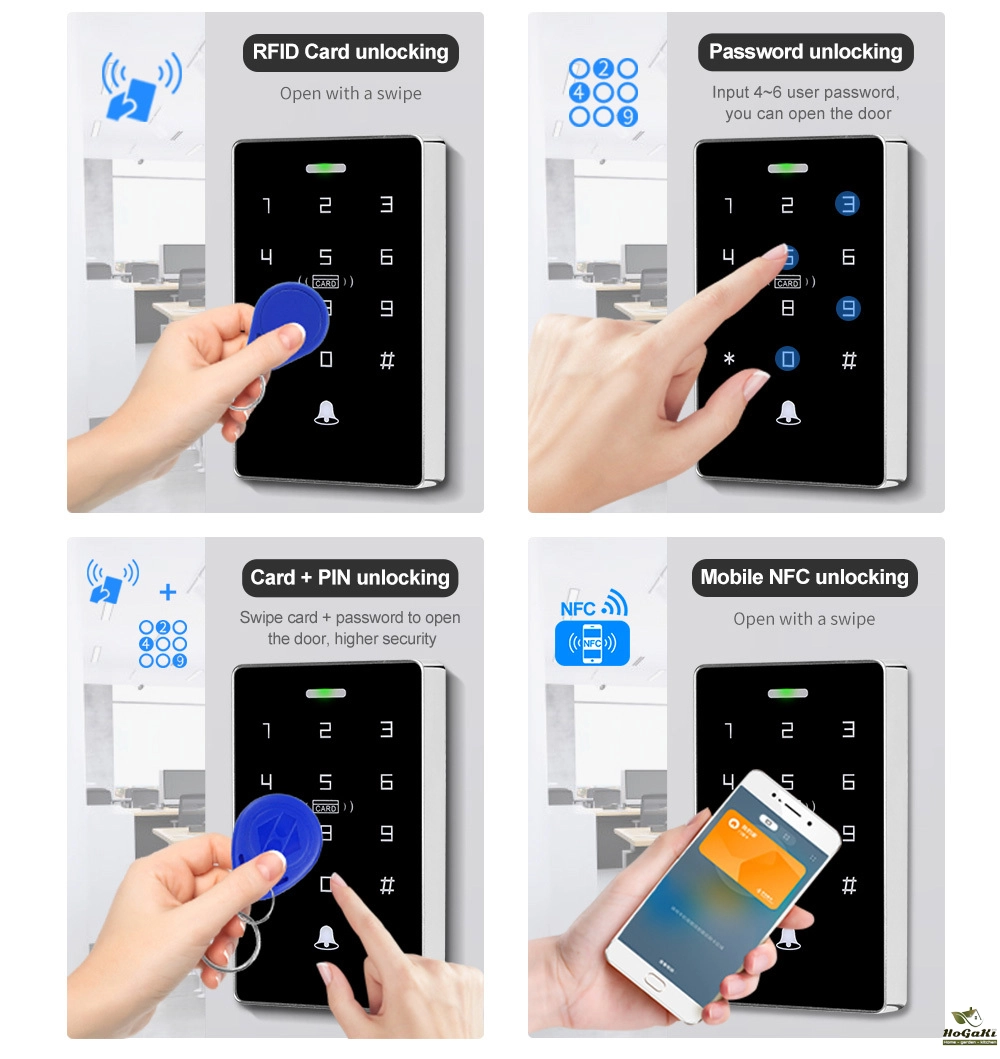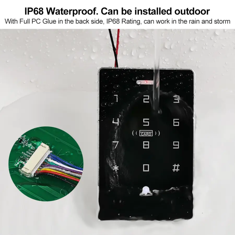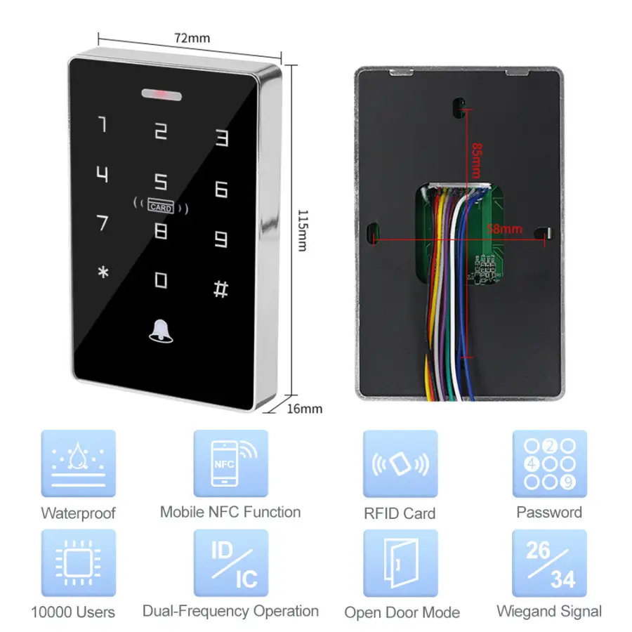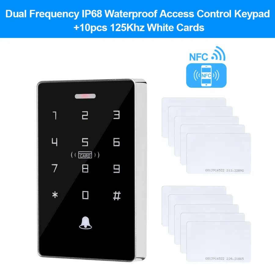 NFC Backlight Touch Dual Frequency 125KHz + 13.56MHz RFID Card Access Control Keypad Door Lock Opener WG Output IP68 Watreproof