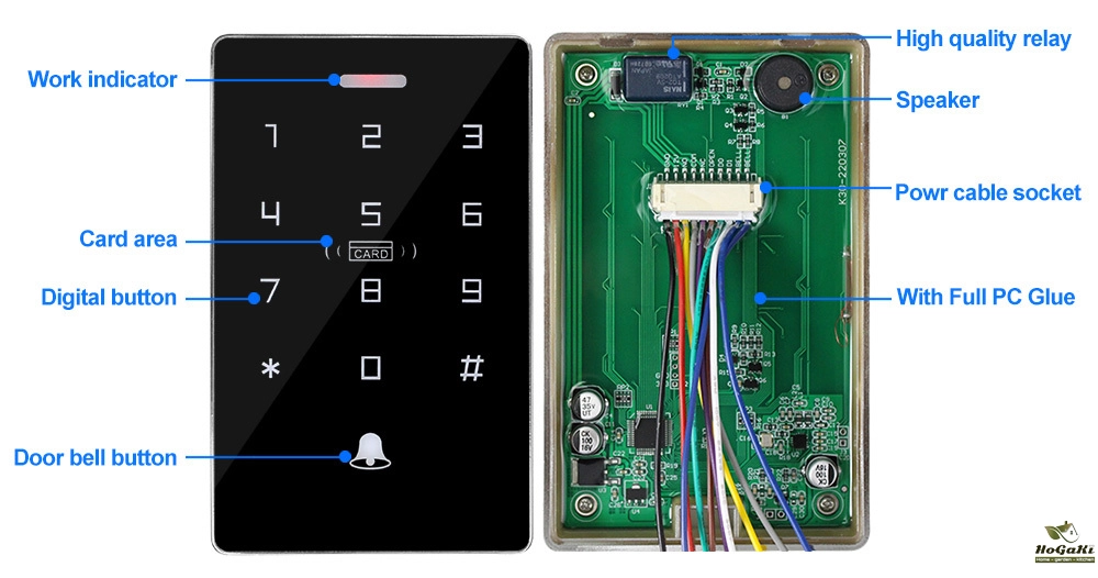 Touch keyboard, beautiful design. Has a door bell button, can install a wired door bell!