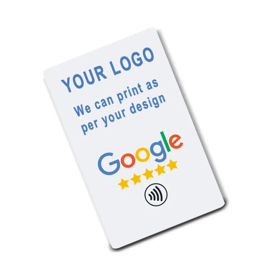 NFC quick link to Google Review or other soical media, you can program the NFC cards with NFC enabled mobile phone with NFC related APP, Such as APP "NFC Tagwriter", and write you google reviews URL into it