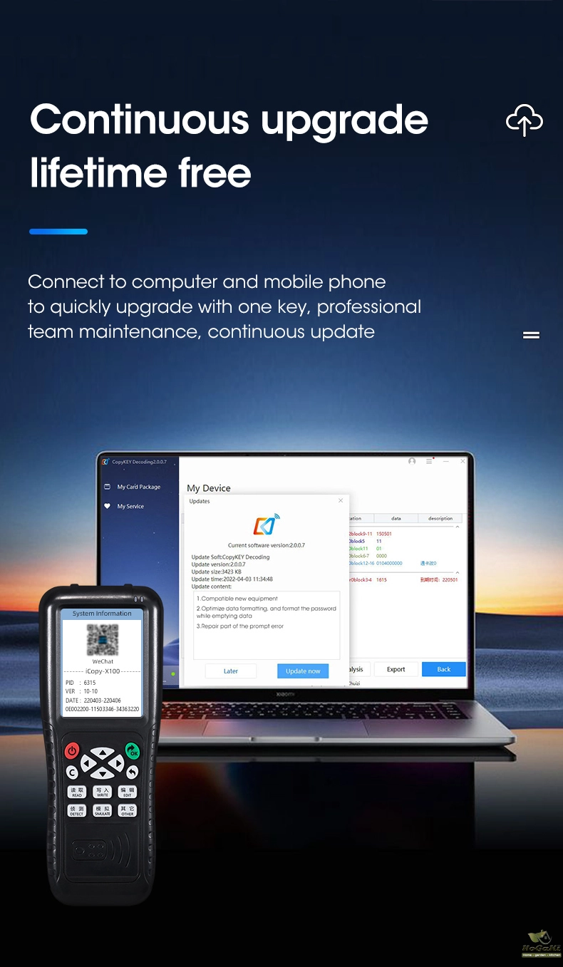 ICOPY Supported IC, MF1, S50, S70, ID, TK4100, EM4100, HID26, HID35, HID37, GID64, GID50, GID40, GID32, GID16, SID64, SID50, SID40, SID32,125KHZ-13.56MHZ;