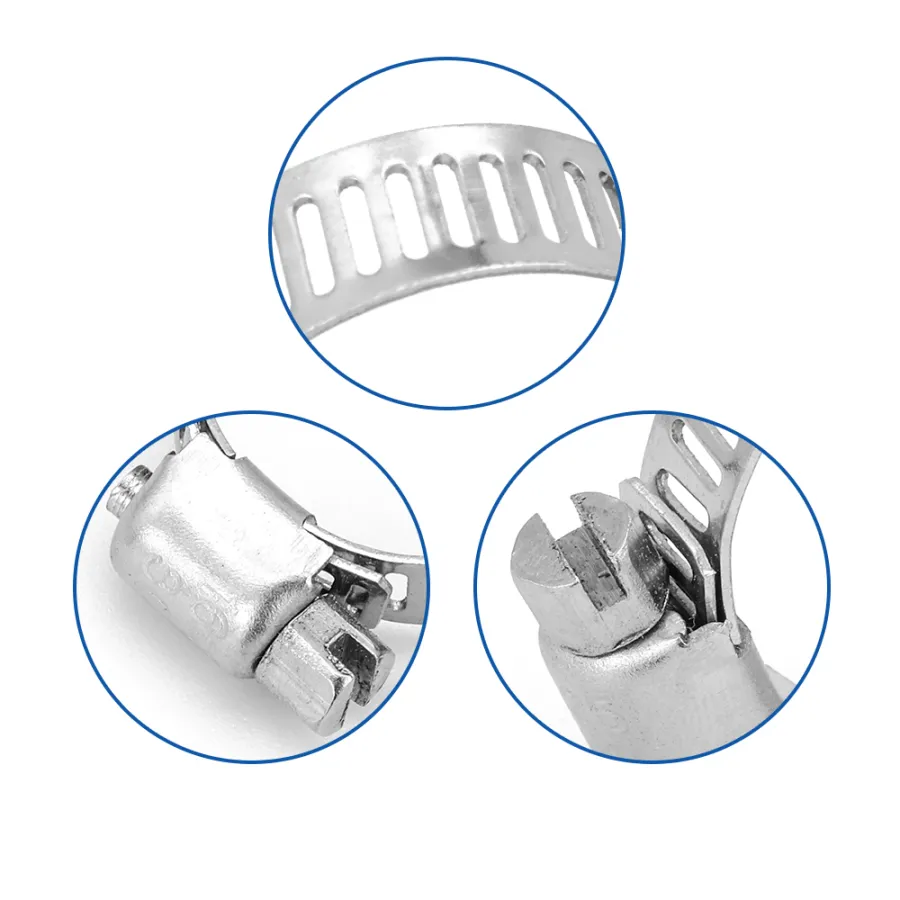 1. The whole hose clamp (including the band, housing and screw) are all made of premium heavy duty stainless steel material. Anti rust, anti-corrosion, waterproof, oil-proof. Clamps are sturdy, strong and reliable.