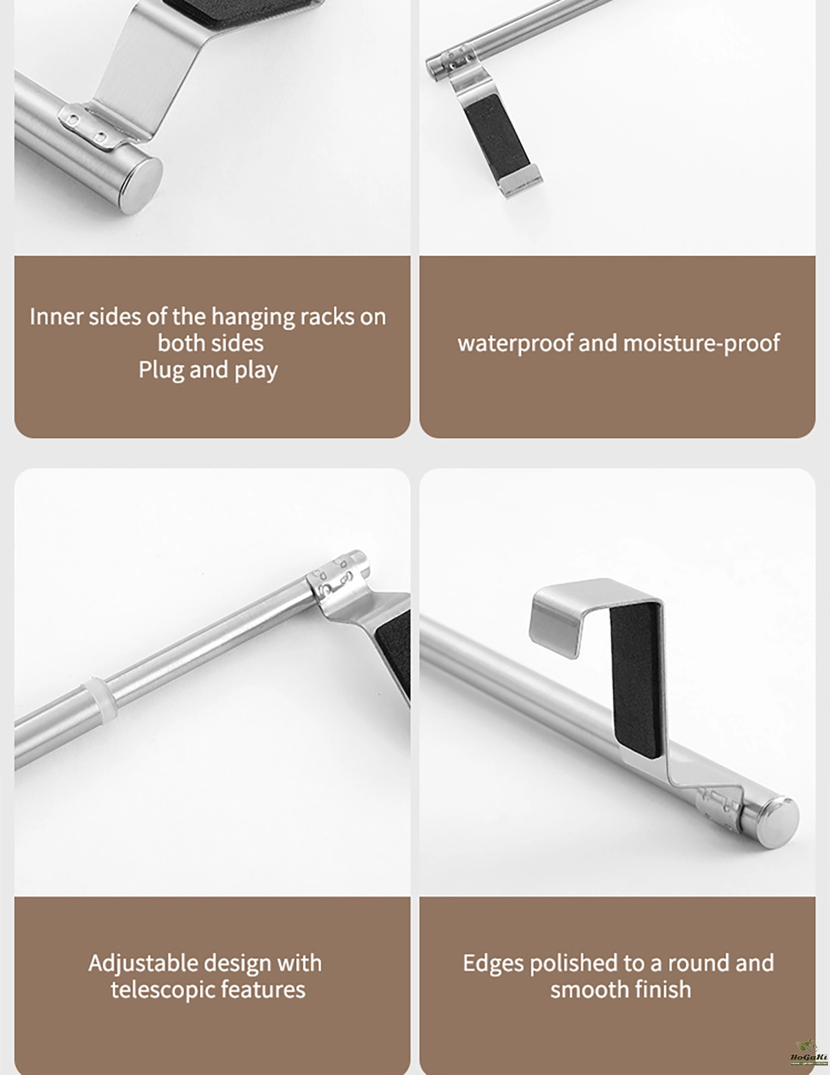 Design features: retractable and adjustable, the distance between the hanging rod and the cabinet door is designed to facilitate ventilation and drying; both sides of the hooks are designed on the inside, and the corners are polished rounded and smooth.