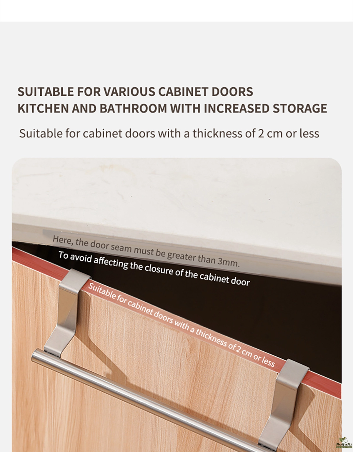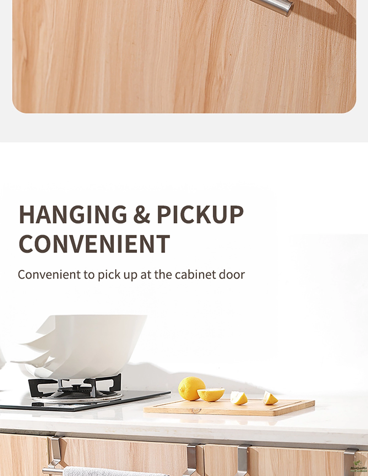 Application: Suitable for kitchen, bathroom and other places of the cabinet door, can be used to hang towels, rags and other items, easy to access, increase storage space.