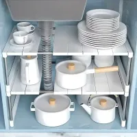 Stackable Storage Rack Wardrobe Layered Partition Rack Closet Sorting Shelves Telescopic Sink Holder Wardrobe Clothing Organizer