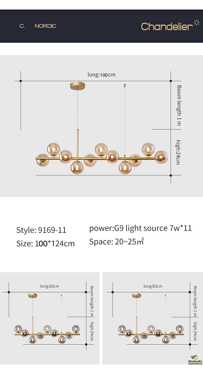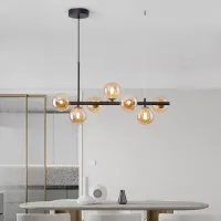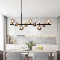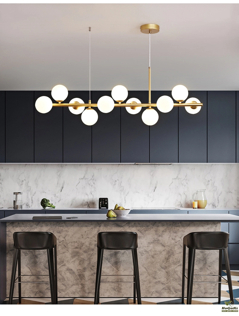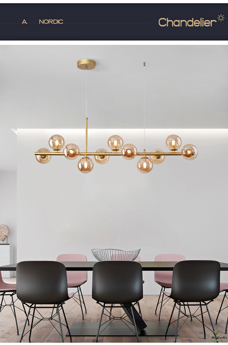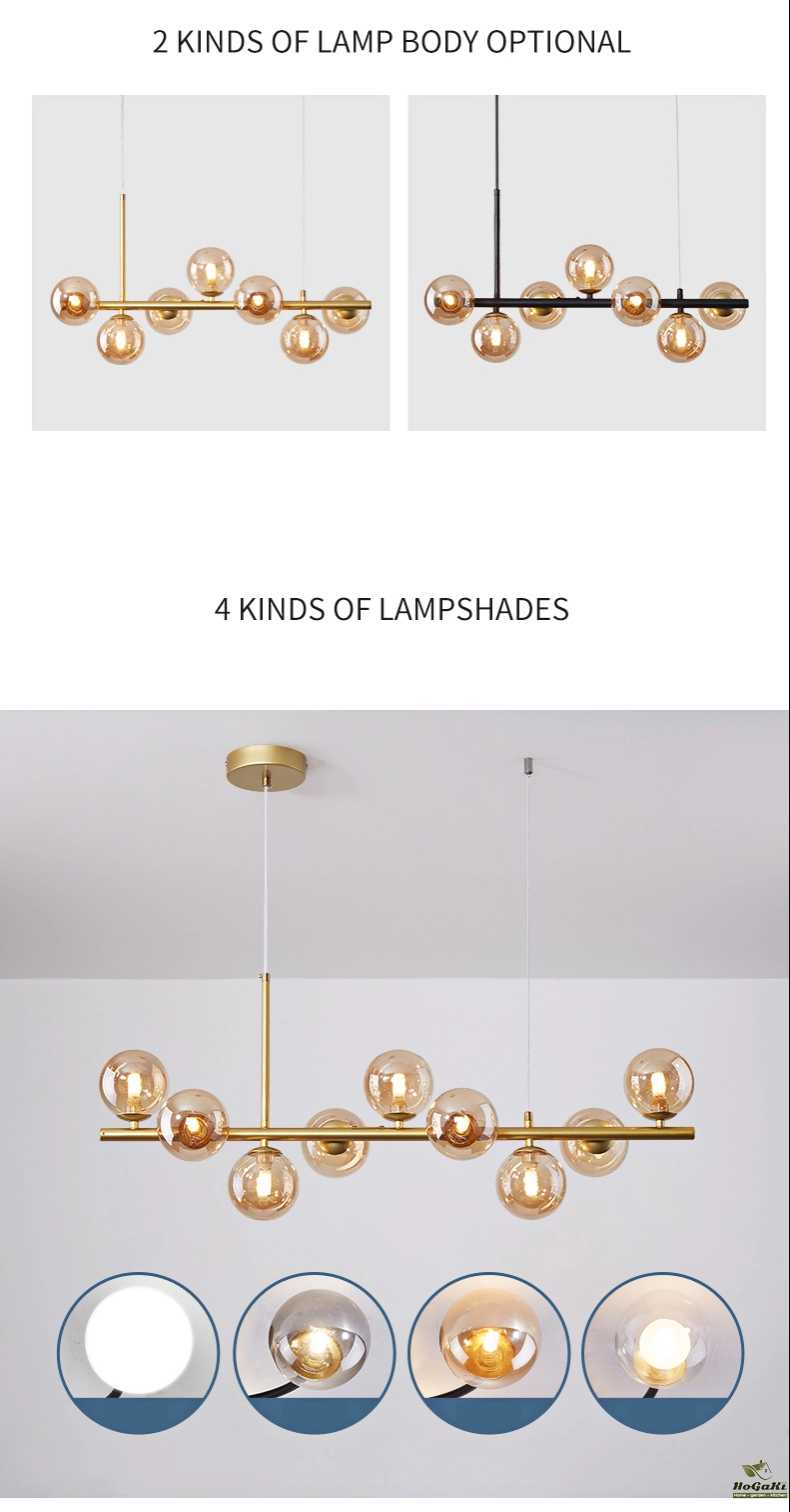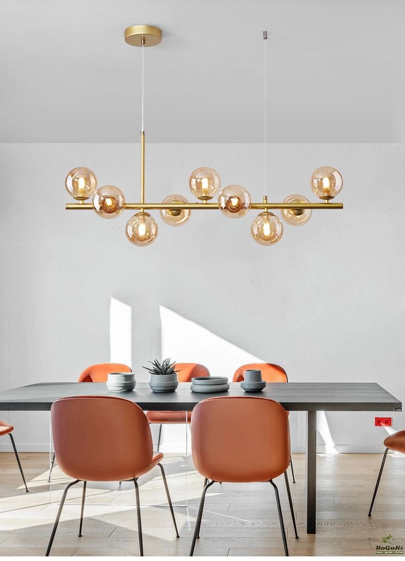 Nordic Modern LED Pendant Gold Light Glass Ball 11 Heads Hanging Lamp for Kitchen Living Dining Room Suspension Luminaire Design