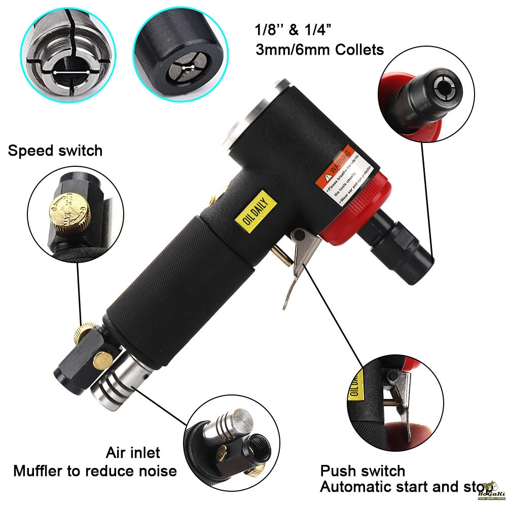 90 degree air grinder makes the polishing effect more uniform and smooth. Low speed and low energy consumption, 20000Rpm Air consumption: 4.3CFM@90PSI