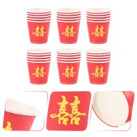 50 Pcs Mini Wedding Cups Tea Disposable Drinks Toast Glass Red Paper Party Chinese Small