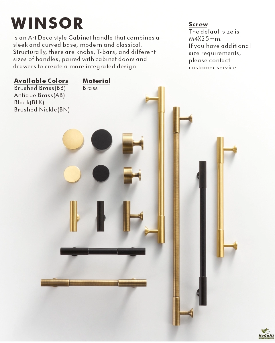 WINSO is an Art Deco style Cabinet handle that combines a sleek and curved base, modern and classical.Structurally, there are knobs, T-bars, and different sizes of handles, paired with cabinet doors and drawers to create a more integrated design.