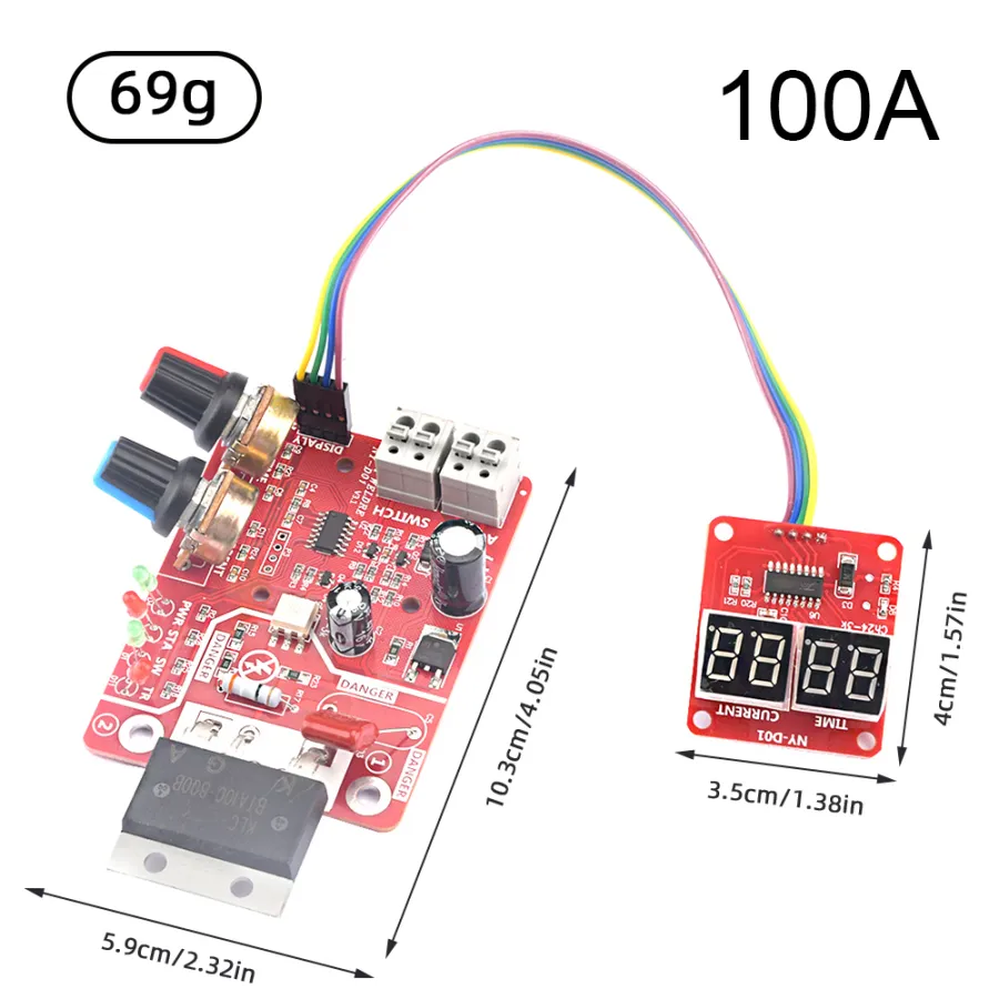 The control panel of the spot welding machine is a controller which is independently developed for the DIY or the simple resistance welding. The principle of silicon controlled phase shifting triggering is adopted to adjust the time and the current to achieve the purpose of welding.