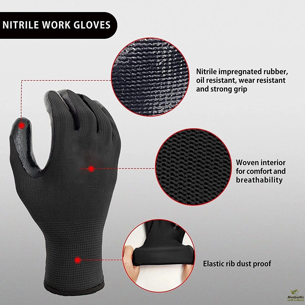 PREMIUM NITRILE COATED Nylon Work Gloves Builders Gardening Grip