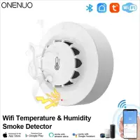 ONENUO WiFi Smoke Detector Alarm Fire Smoke with Temperature Humidity Detection 80dB Sound for Alexa Google Home Tuya Smart Life