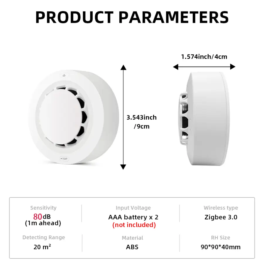 This product is an intelligent Zigbee photoelectric smoke sensor. It is able to detect the presence of smoke in real time. Once the danger of fire smoke is detected, the red LED of the sensor will illuminate and alarming to remind you and your family in time. It can be widely used in homes, lounges, coffee shops, dance halls and other places where fire alarm monitoring is required. (This sensor cannot detect gas/heat/fire.)