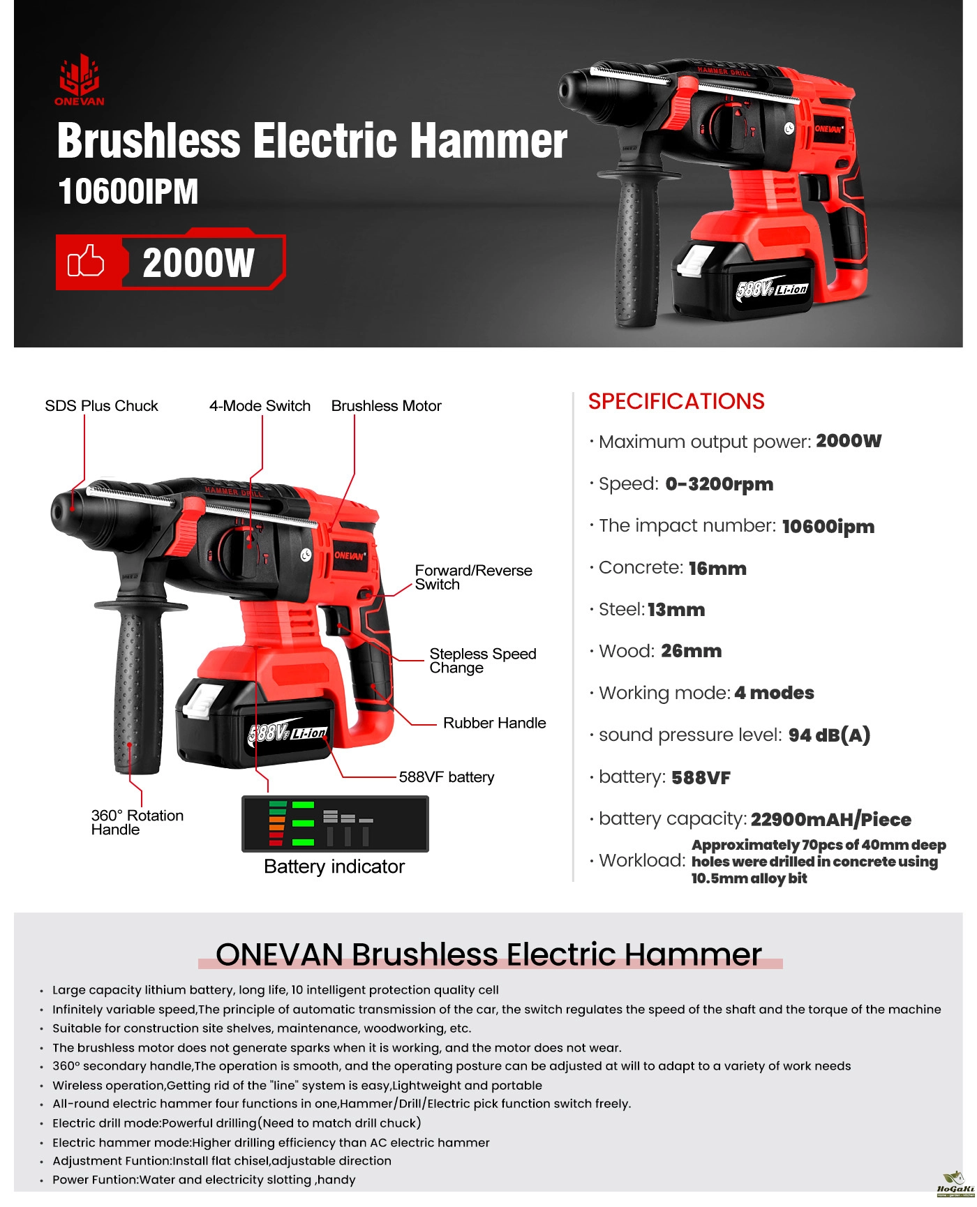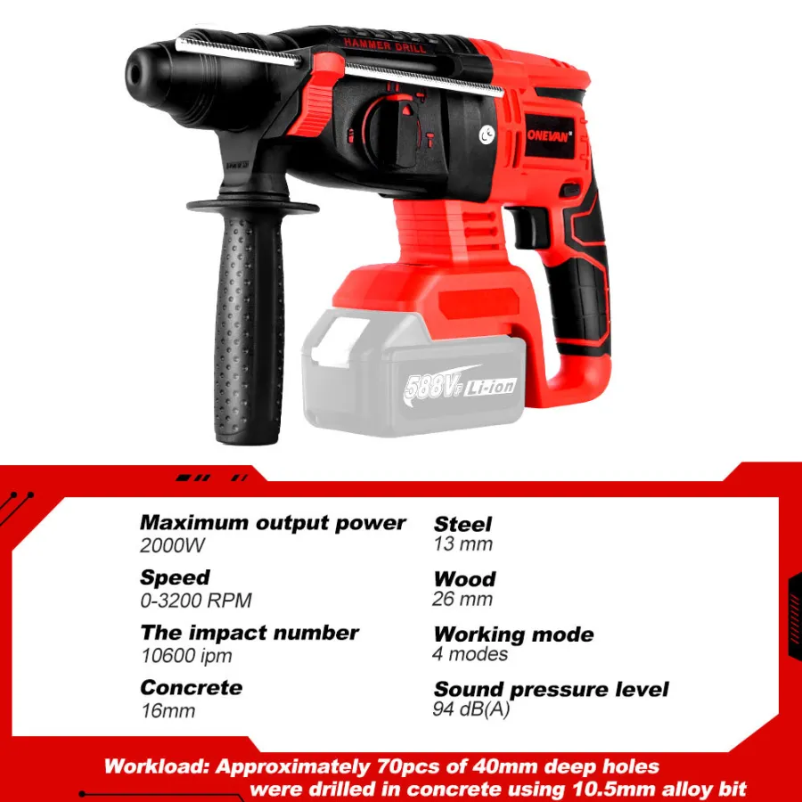 3 Functions Electric Brushless Rotary Hammer Multifunctional Impact Hammer Drill Power Tools For Makita 18V Battery(No Battery)