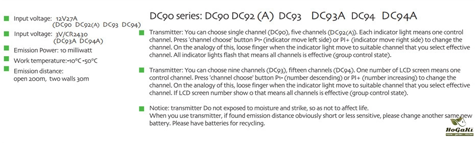 1. This package only include 1pcs DC90 single channel transmitter and NO BATTERY.