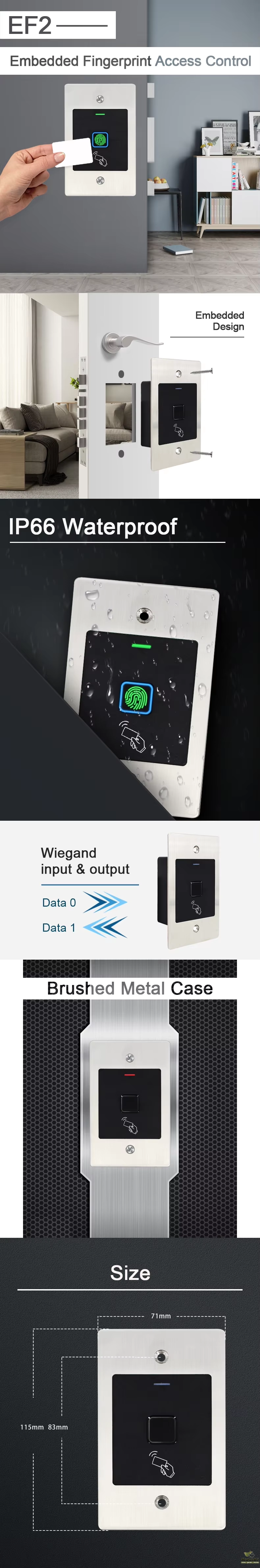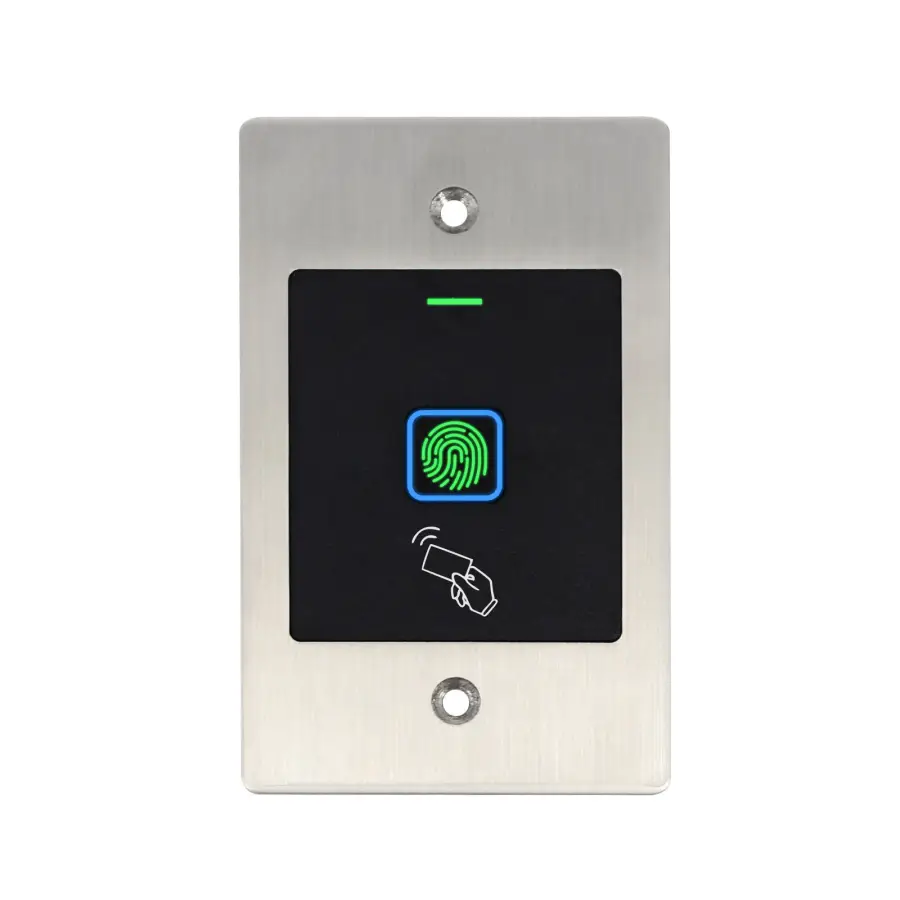 The device is a metal case standalone fingerpint access control with embeded desin,the wiegand input&output make it also could be a controler or wiegand reader.