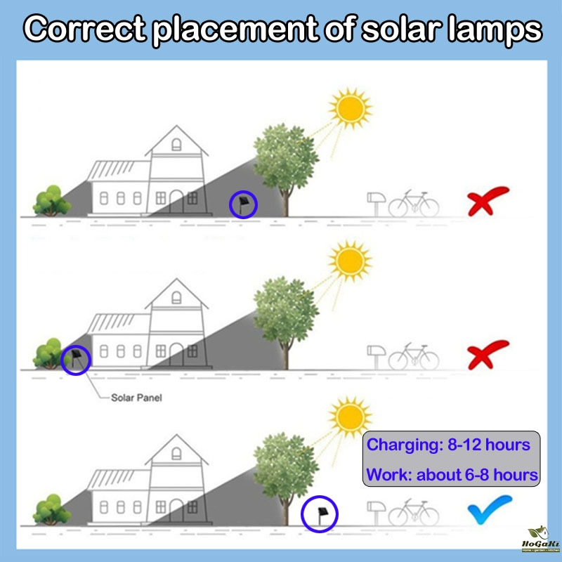6. Solar lights should be installed in a place with effective light to ensure that the solar panel fully absorbs sunlight,