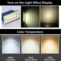 Color Temp: 6000~6500K(Cool White) /4000~4200K(Natural White) / 3000-3200K (Warm White)