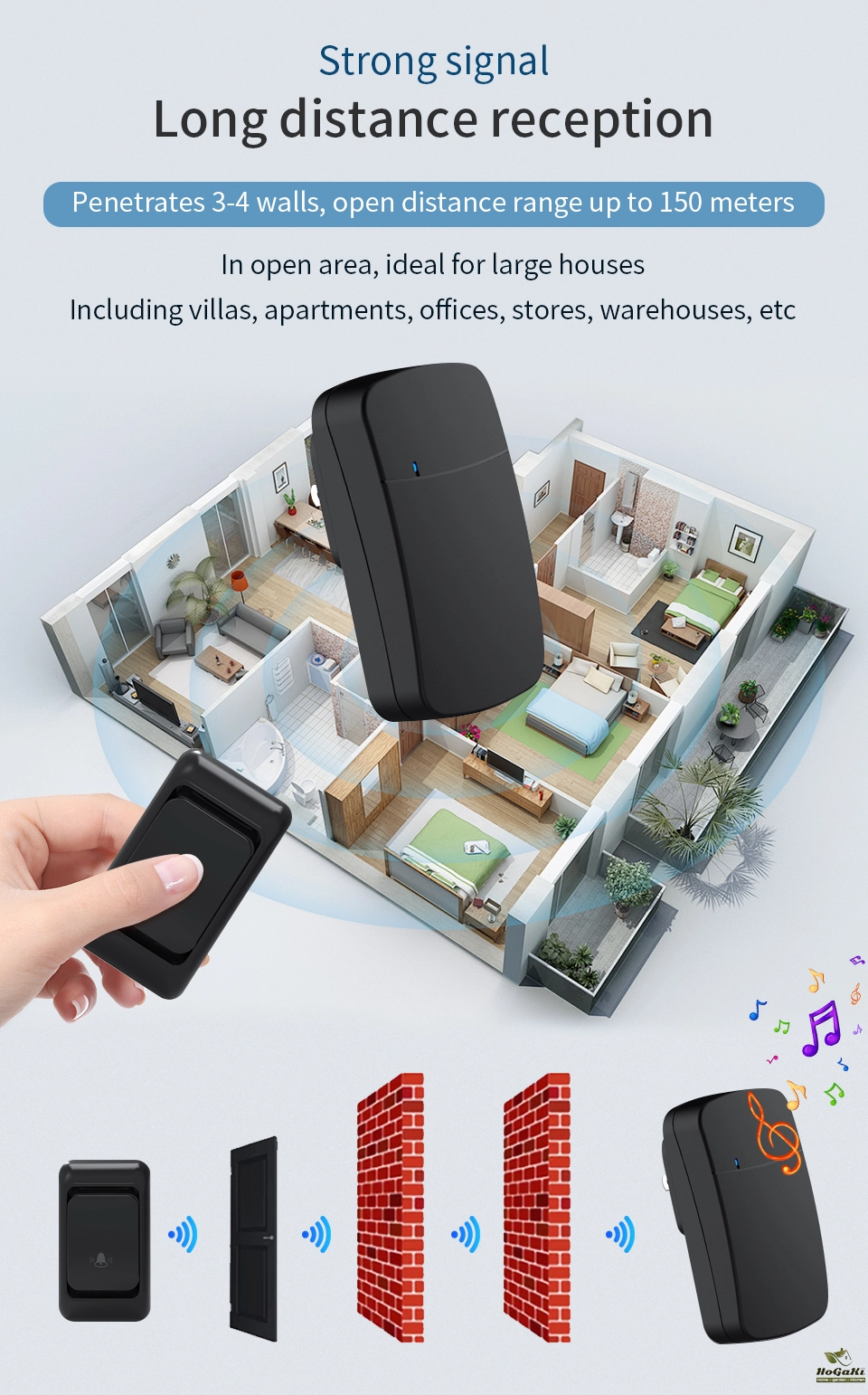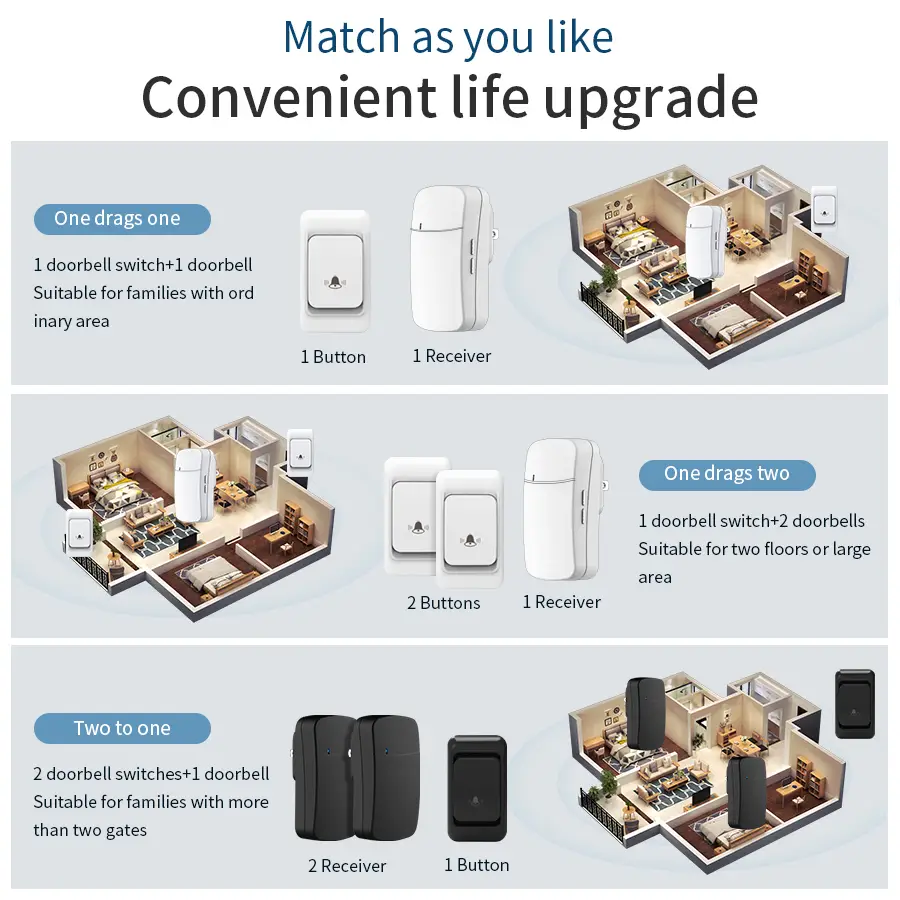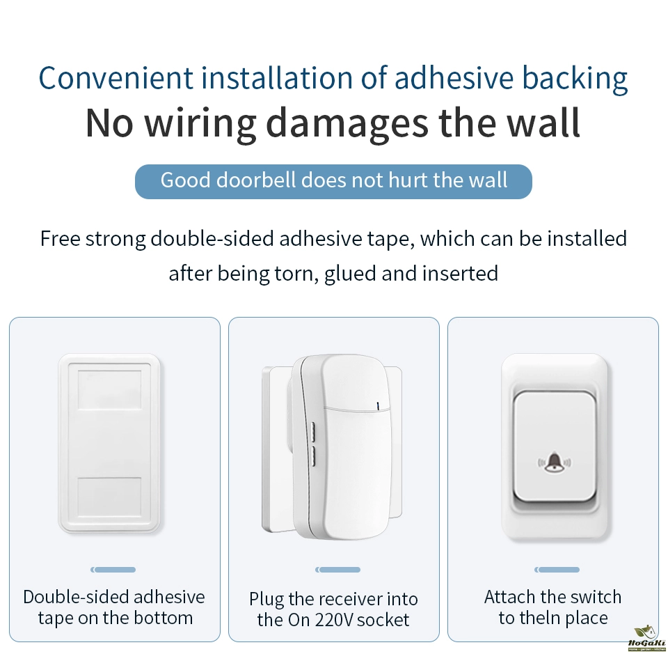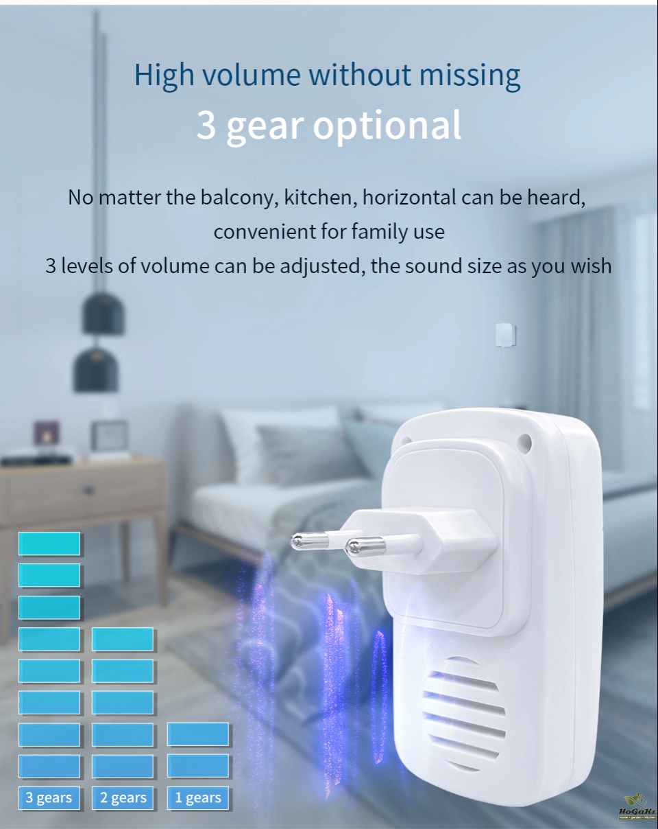 2. This doorbell does not need wiring, plug and play, convenient and practical, easy to install.