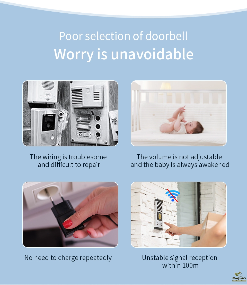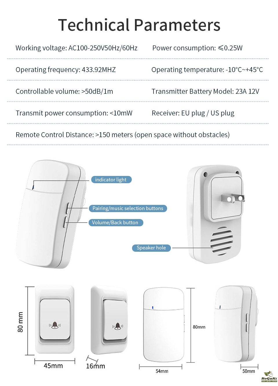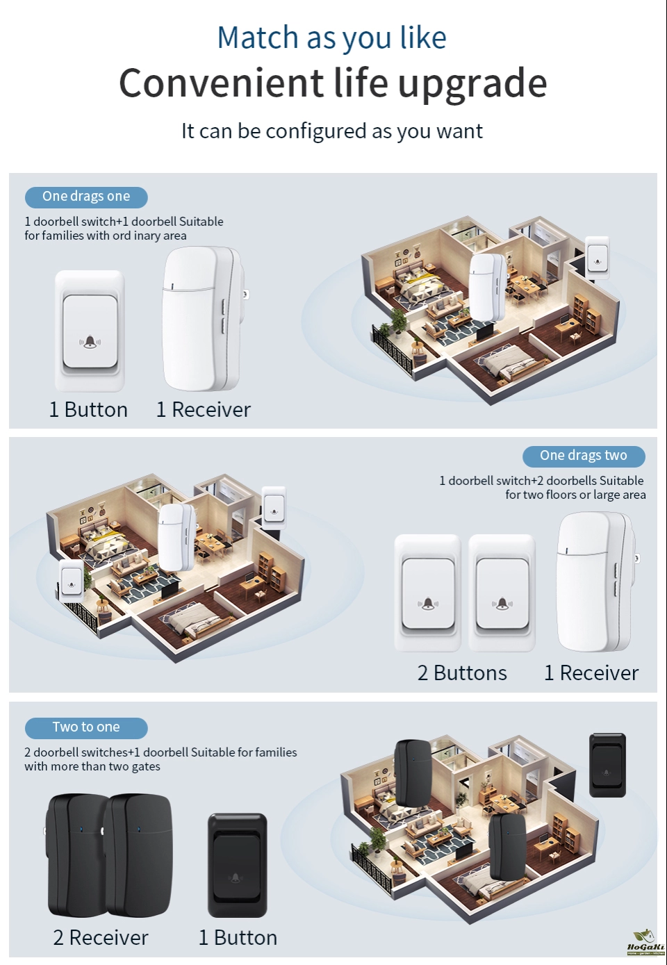 2. This doorbell does not need wiring, plug and play, convenient and practical, easy to install.