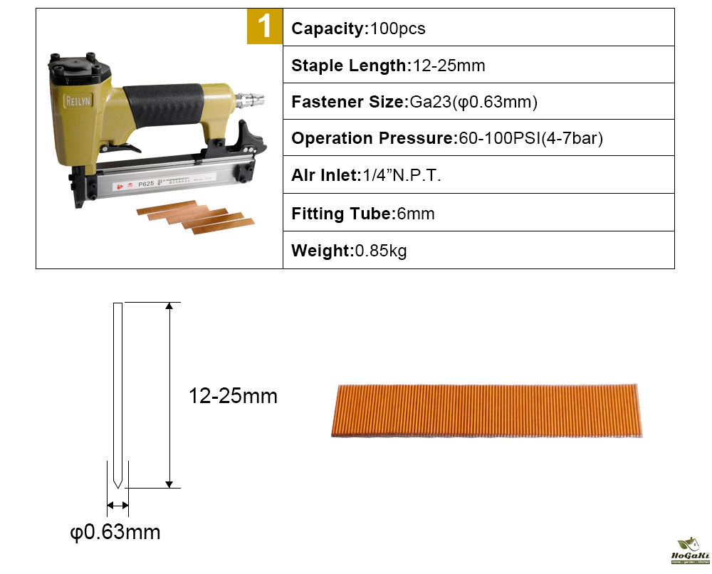 1. Specifications: This pneumatic nailer is 23-gauge and suitable for 23-gauge nails, providing a powerful fastening solution for carpentry and home improvement projects.