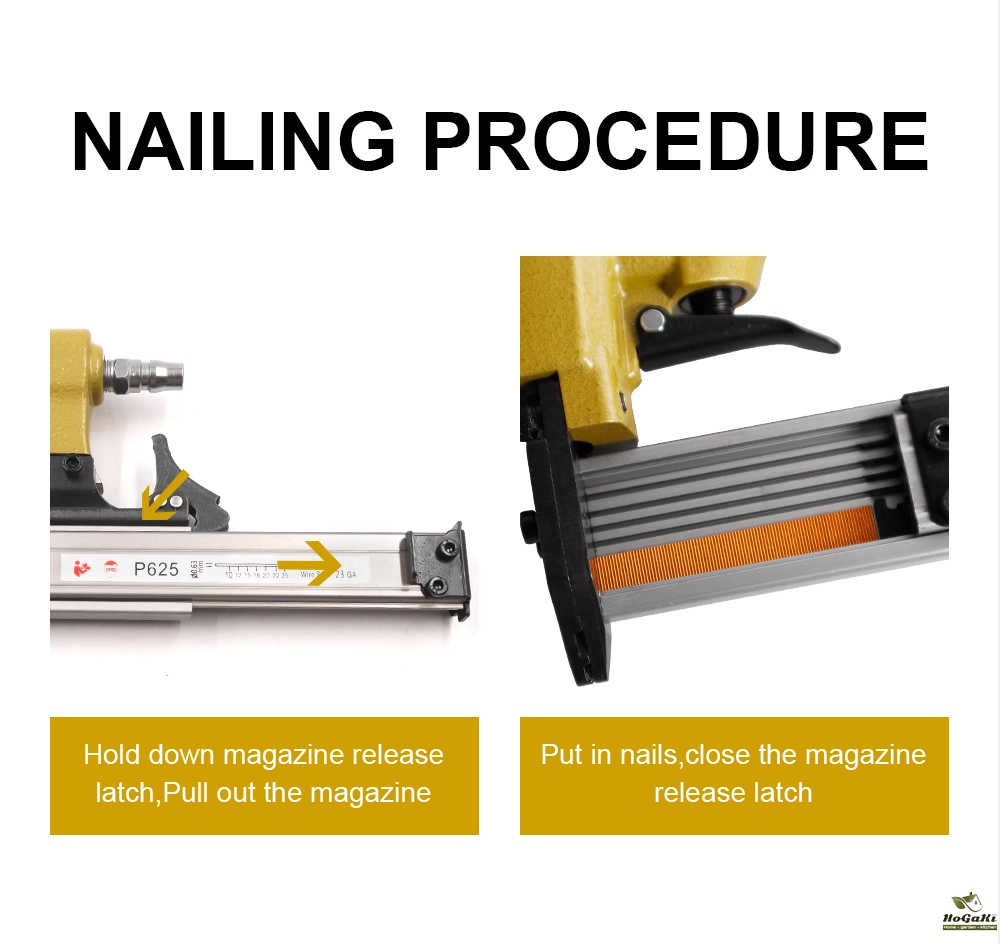 2. Versatile Design: The P625 pneumatic nailer is suitable for carpentry, home improvement, and framing, offering high flexibility and making it an ideal choice for a wide range of projects.