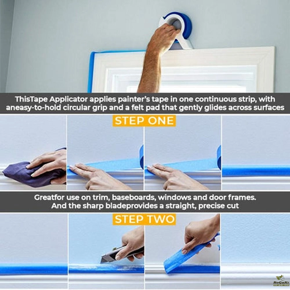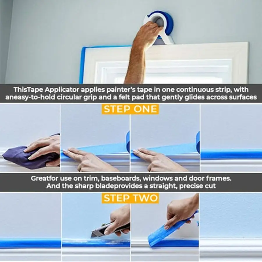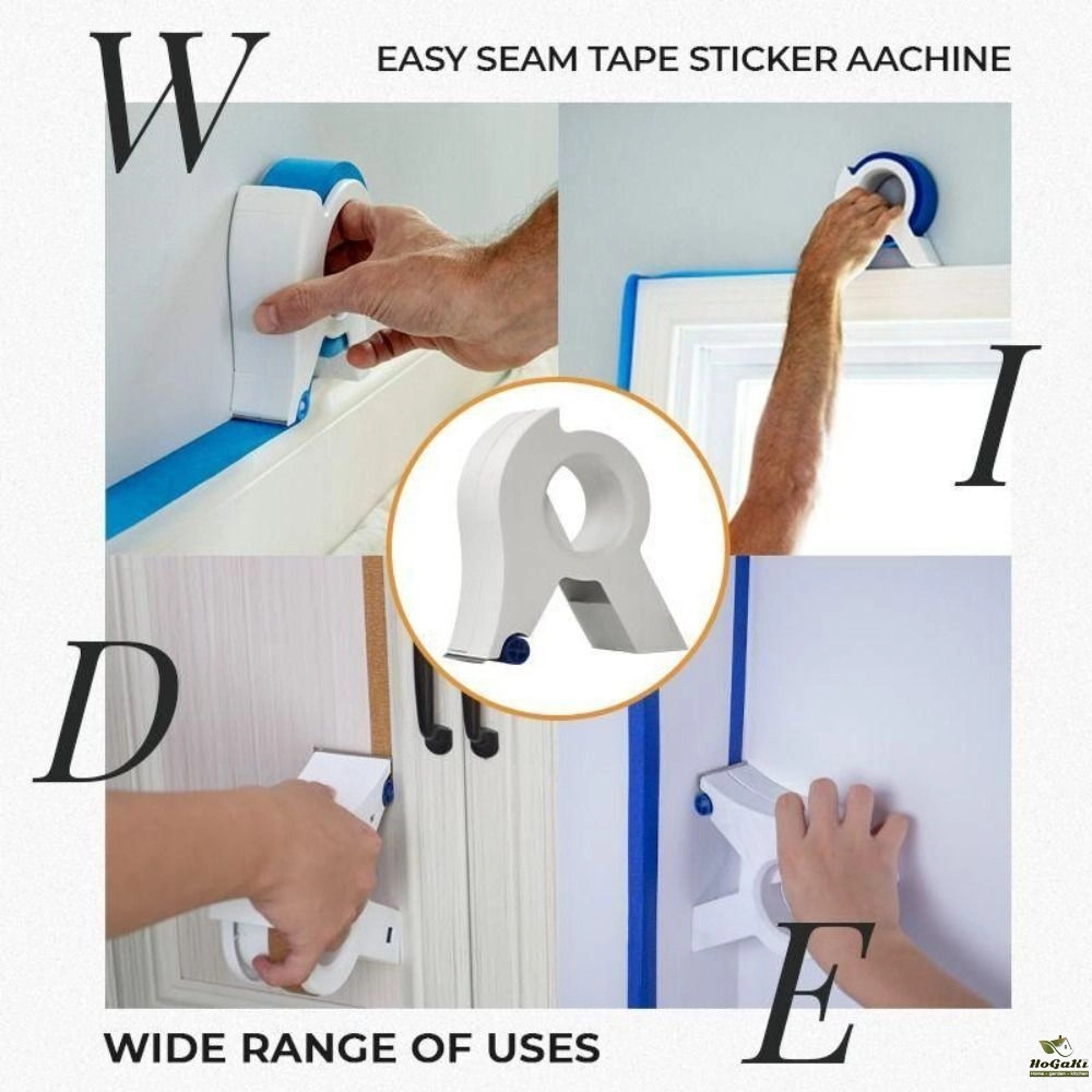 Item: Easy Seam Tape Sticker Machine Product Size(L x W x H) 15 × 6 × 16cm / 5.9 × 2.4 × 6.3inches Masking Tape Color: as shown Tape size: 35MM*20M/roll Color:as shown Description 1. Easy Seam Tape Sticker Machine's tape applicator is your new tool for faster and easier preparation. 2. Easy Seam Tape Sticker Machine applies painter's tape in one continuous strip with an easy-to-grip round handle and a felt pad that glides gently over the surface. Plastic rollers seal the tape tightly to a variety of surfaces. It is then cut when needed using a serrated metal edge. 3. The tape dispenser's sharp cutting edge provides straight, precise cuts. Featured with a metal serrated cutting edge, back finger brake,it allows rollers to hold the tape firmly on the surface and a flat side standing, so you can apply tape quickly, easily, and accurately. 4. With its rounded handle for easy grip and ergonomic design, keep your tape clean and ready to use with this precision applicator. Easy to operate, you'll be using it in less than a minute. 5. The roller wheel at opening ensures tape releases evenly and accurately. Push in the three clips to release the backing plate for a refill, Then plastic rollers hold the tape in place with a tight seal, and a tape dispenser protects the tape while making it easier to apply the tape accurately. Easy to Install 1.Place the masking tape into the Tape Applicator 2.Cover the other half and slide it to the right to close it. 3.Open it by sliding it to the left and lifting it up. 4.Easy to place and replace masking tape. The applicator protects doors, cabinets, window glass, etc. from the paint applied and allows for quick and precise application of plain tape to objects, which is very practical and versatile. Package Contents 1pc Easy Masking Tape Applicator or 1pc Masking Tape