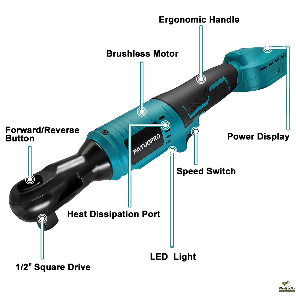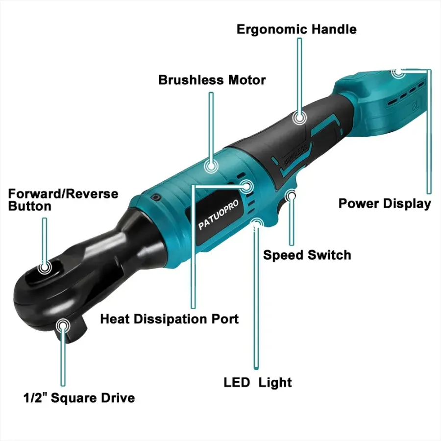 1.【Powerful Brushless Motor】The ratchet wrench equipped with a brushless motor has higher efficiency and lower energy consumption during use, and has lower maintenance requirements, extending the service life of the machine. The cordless ratchet performs just like an air ratchet, but without the annoying wires and constant loud noise from the air hose.