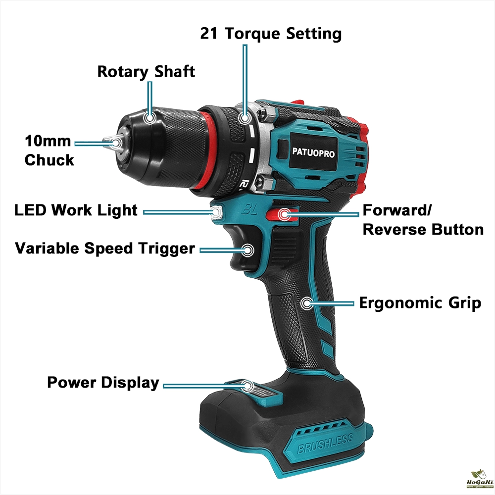 - Powerful Brushless Motor: The cordless drill uses a high-performance brushless motor with many benefits. The brushless motor is more powerful, energy-efficient, responsive, and capable of packing more power, torque, and speed. It makes the drill easy to maintain, smaller and lighter, gives better heat dissipation, more extended durability and low vibration and noise.
