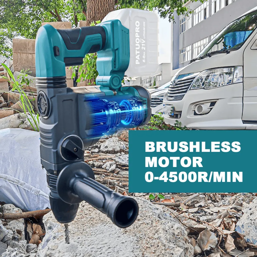 【Powerful Motor】Our high-performance electric hammer features a brushless motor, ideal for heavy-duty concrete work. The brushless motor ensures long working hours without overheating, and a heat exhaust system at the bottom of this electric hammer extends the life of the hammer. Trust the power and precision of our rotary hammers to increase your efficiency and improve your job.