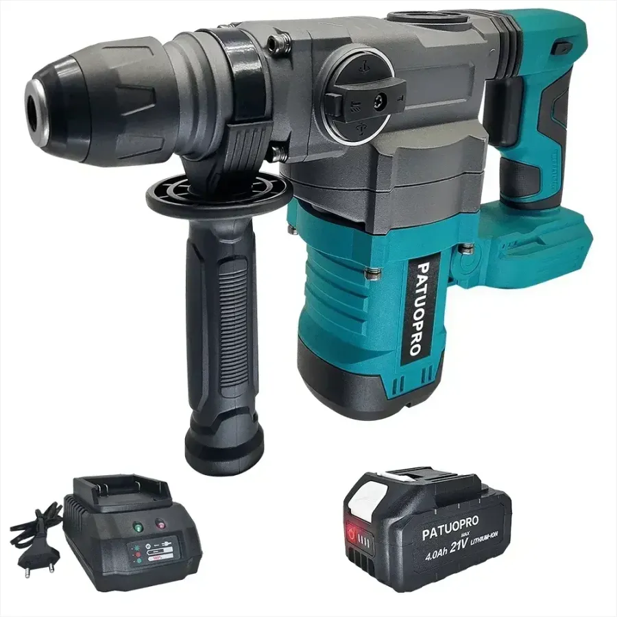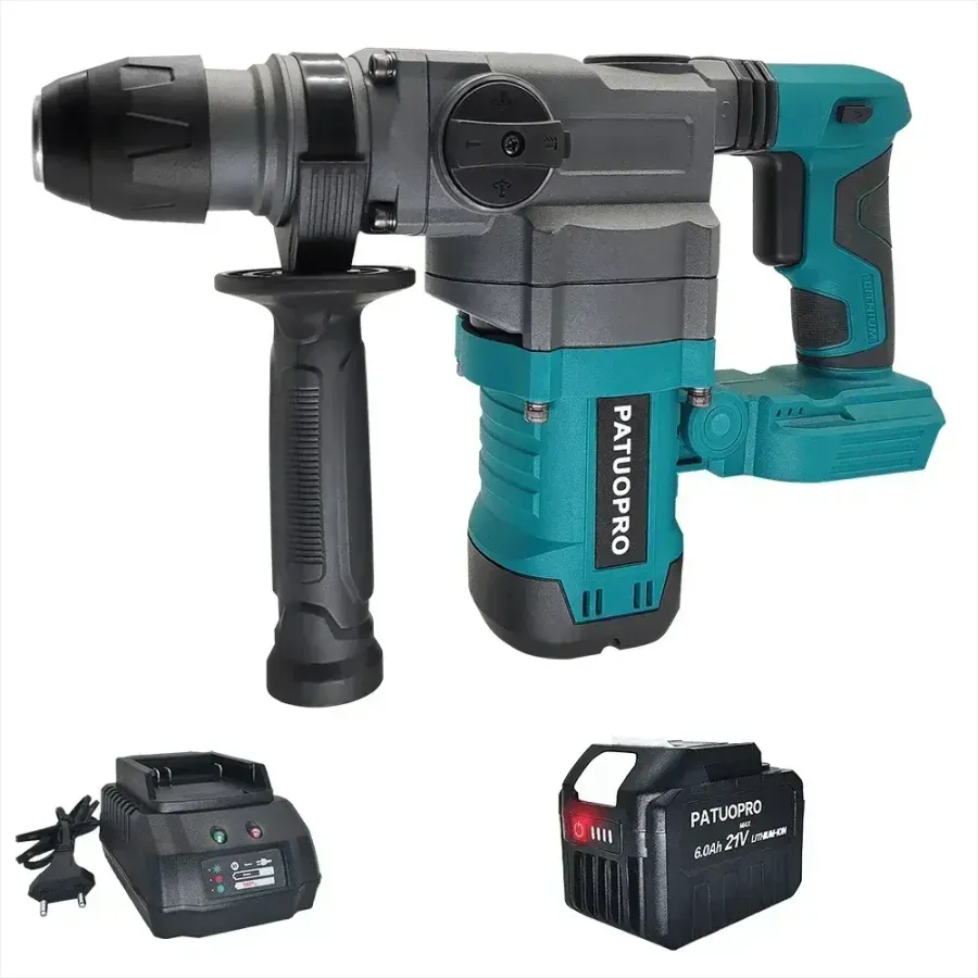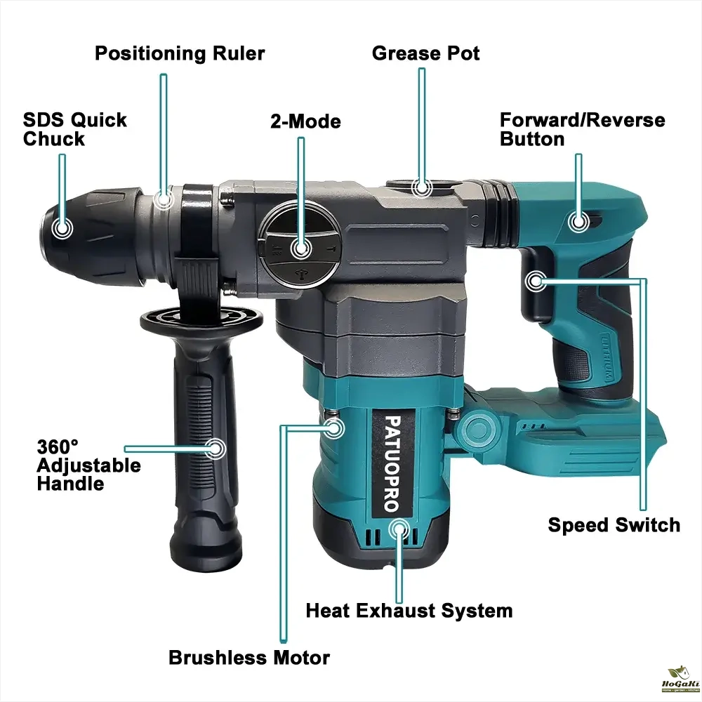 - Ergonomic Designs: With the non-slip auxiliary design, the 360° rotating auxiliary handle adds flexibility and a better grip, convenient for operation at any angle. The high-strength chuck of this rotary hammer does not drop the drill and can lock the drill bit tightly.