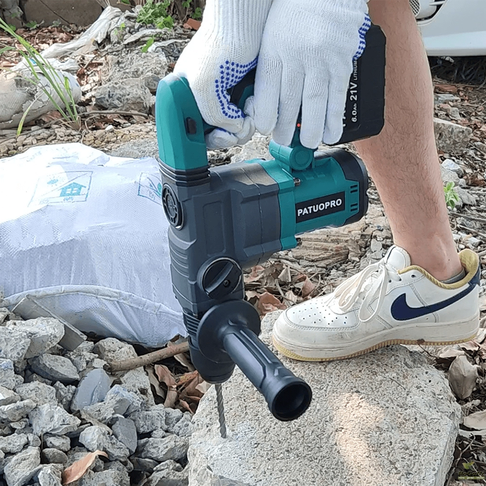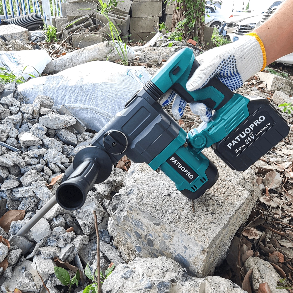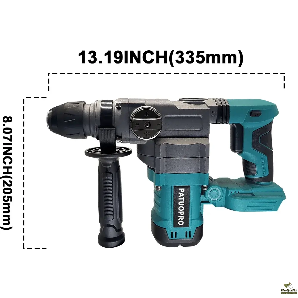 - Powerful Rotary Hammer: Brushless motor adopted by hammer drill is ideal for the most tedious tasks. It has higher productivity, longer running time, and less heat. The no-load speed of drilling is 800R/MIN, and various applications can be completed by adjusting the variable trigger.