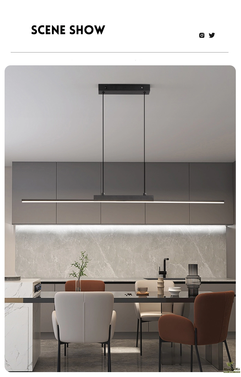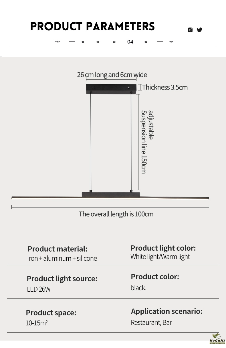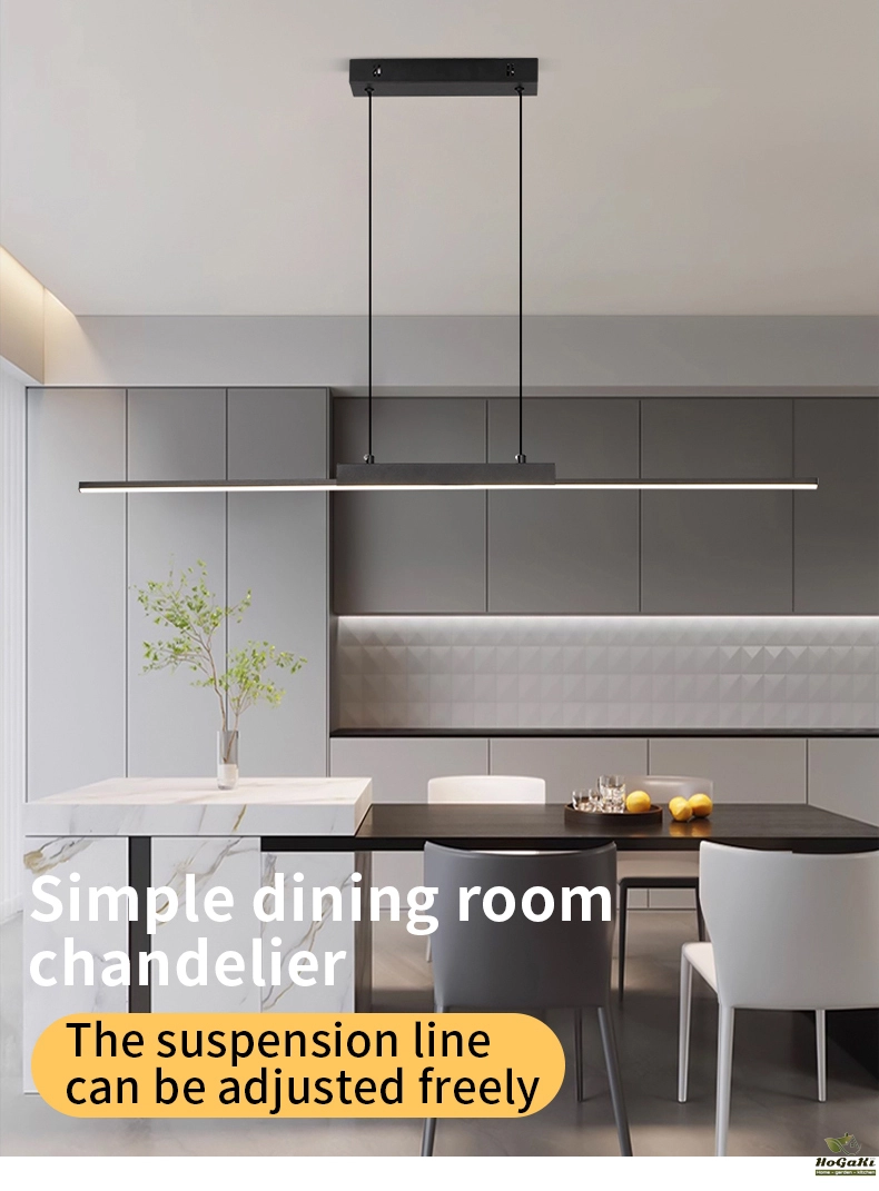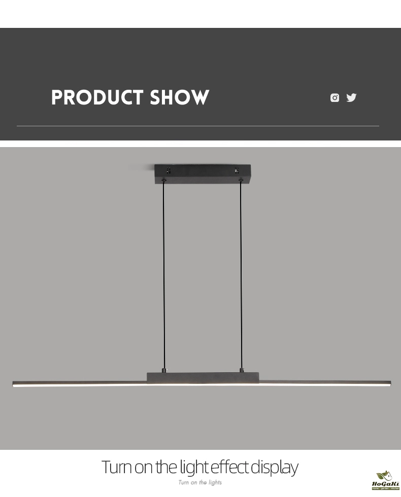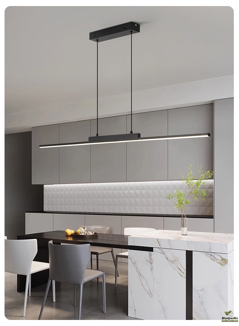 LONG PENDANT LIGHT | IN THE DINING ROOM | SIZE:100*2CM | BLACK | POWER:26W