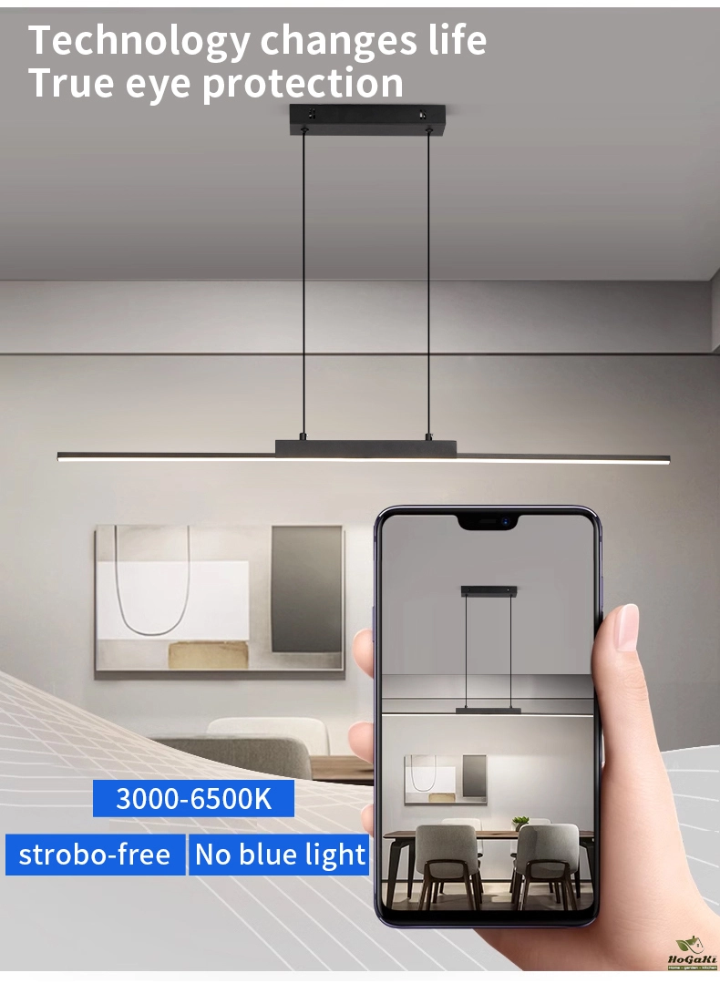 LONG PENDANT LIGHT | IN THE DINING ROOM | SIZE:100*2CM | BLACK | POWER:26W